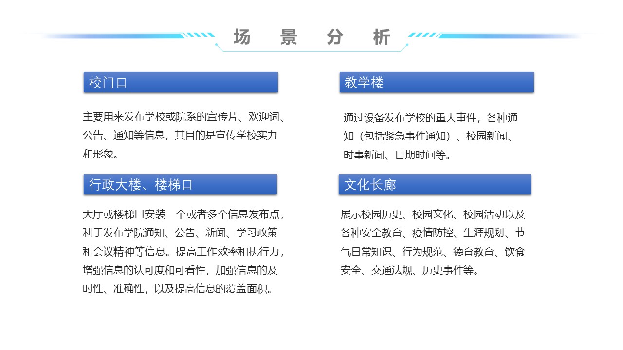 z6com·尊龙凯时信息发布系统采用全新的互联网多媒体网络,,,系统基于集中实时统一管理、、、、多路播控、、灵活分配等功能的多媒体信息发布平台。。管控各个场景数字屏幕,,,灵活高效、、集中控制、、智能发布、、、实时监播,,,,实现学校的屏幕管理控制, 更加智能、、、高效、、安全。。。。