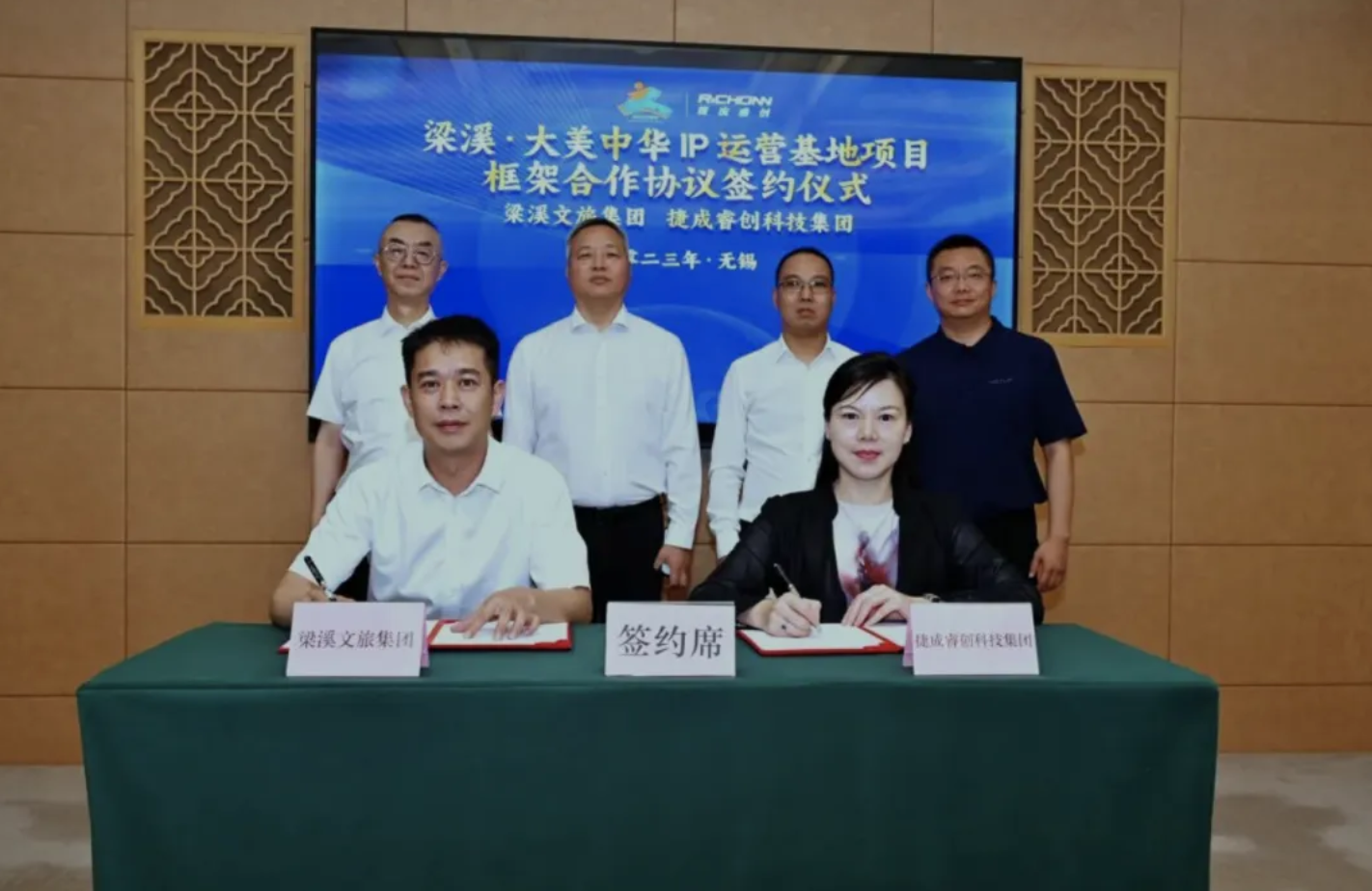 双方共同成立合资公司对于梁溪·大美中华IP运营基地项目进行开发建设,,,,以“IP+⽂化传承+情感连接”为核⼼理念,,,通过IP形象的塑造和文旅产业的数字化升级,,向消费者传达⽆锡的历史⽂化内涵,,,,加强⼈们对⽆锡的认同感和情感联系。。。。
